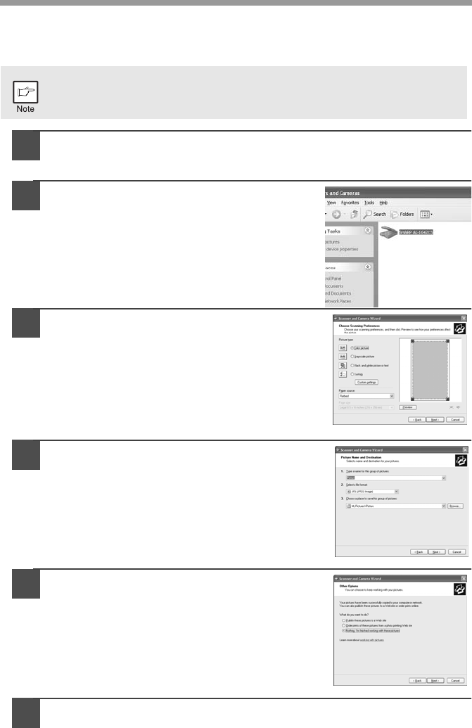 procedure for scanning with the "Scanner and Camera Wizard" is explained here.