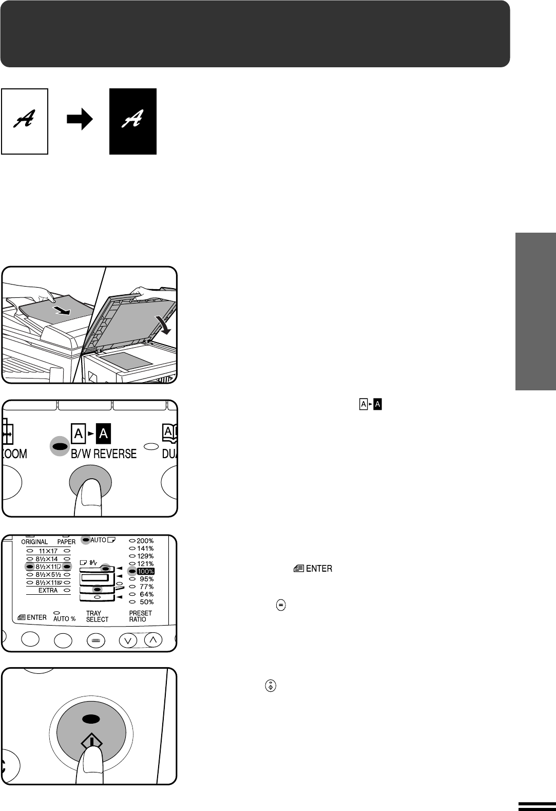 The B/W REVERSE feature is used to reverse black and white areas.