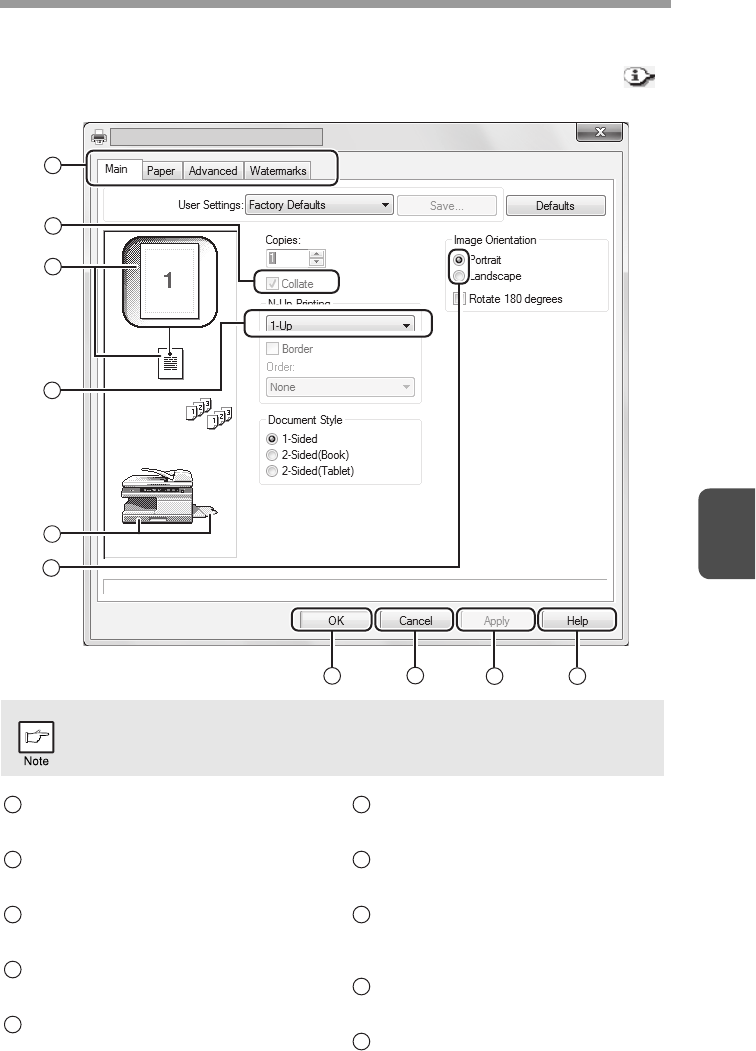 printer driver setup screen. When a restriction is in effect, an information icon ( )