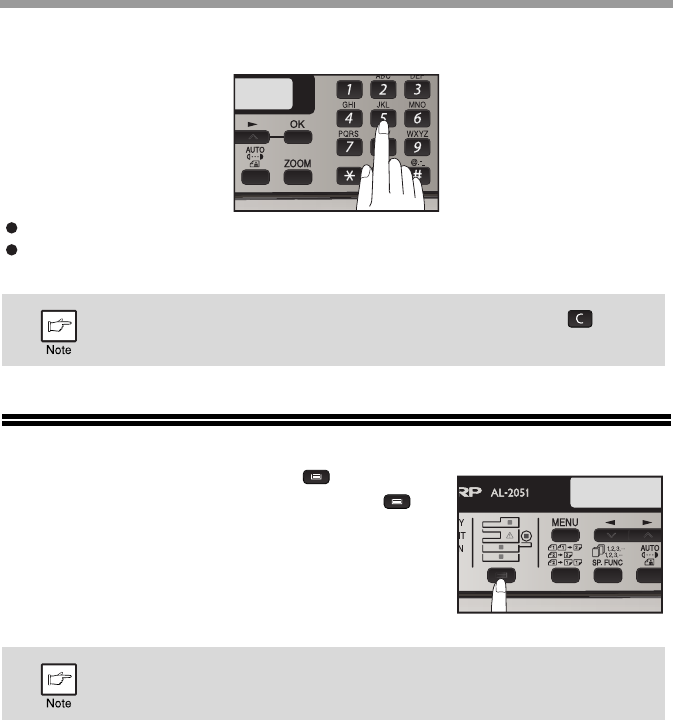 Press the numeric keys to set the number of copies.