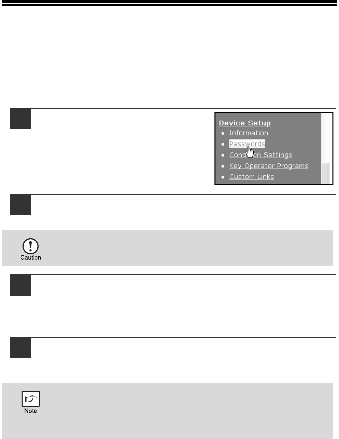 Passwords can be set (click [Passwords] in the menu frame) to restrict Web page