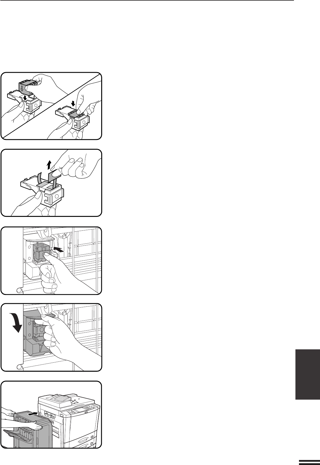 Âñòàâüòå íîâûé êàðòðèäæ ñî ñêîáàìè âíóòðü áëîêà è