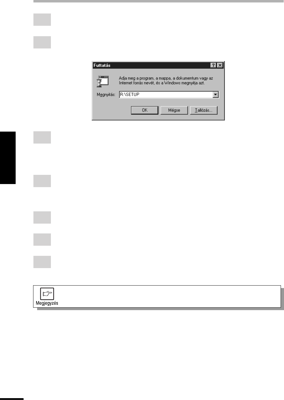 Run (Futtat) gombra. Az alábbi képernyő megjelenésekor gépelje be: R:\SETUP (ha
