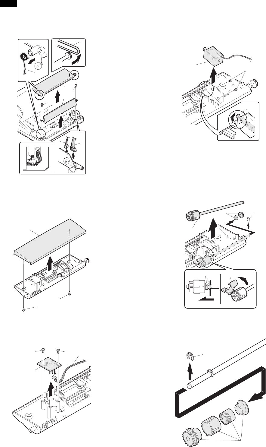 1) Remove the belt, the paper feed frame SP, and two harnesses.