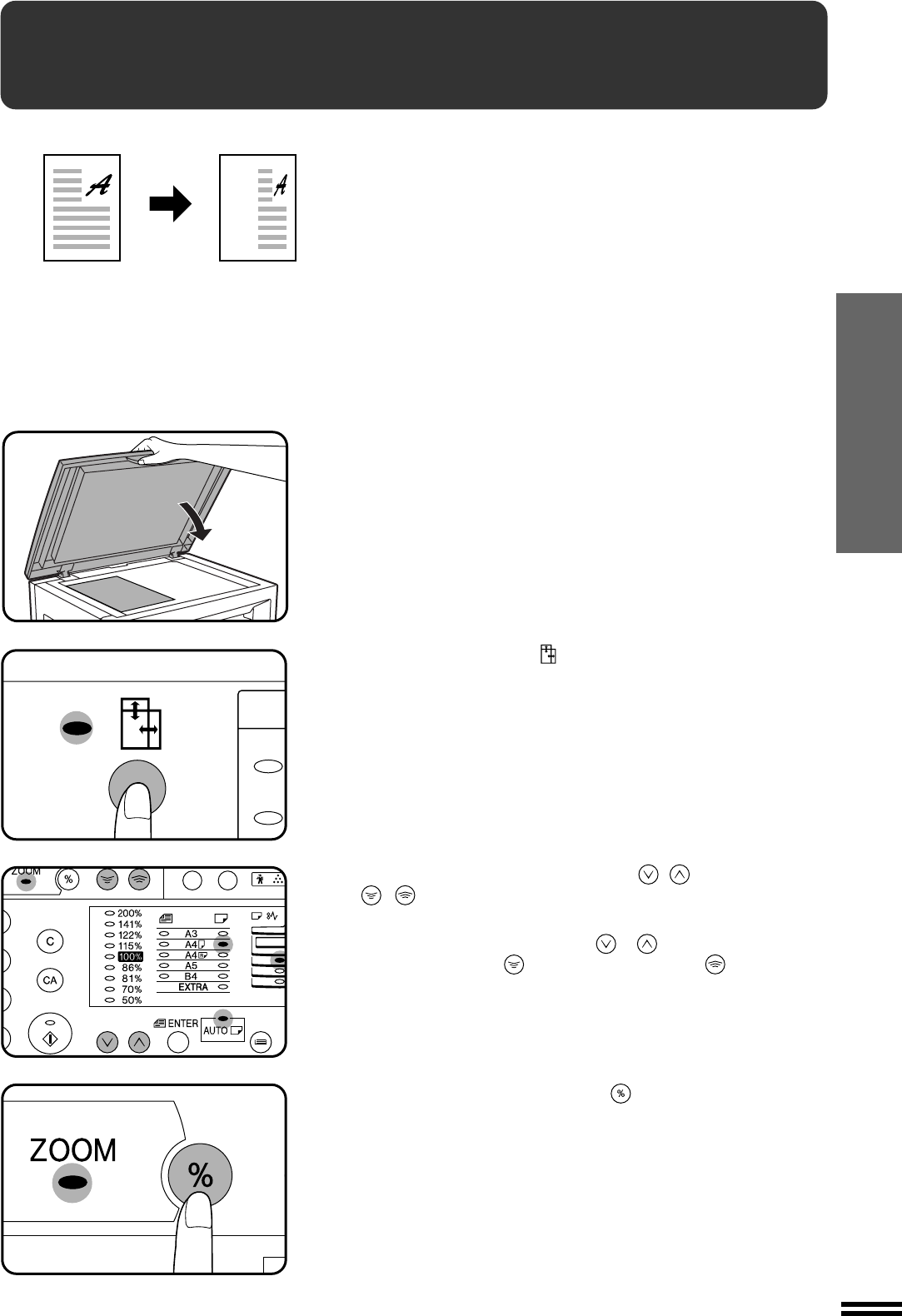 The XY ZOOM feature allows the horizontal and vertical copy ratios to be