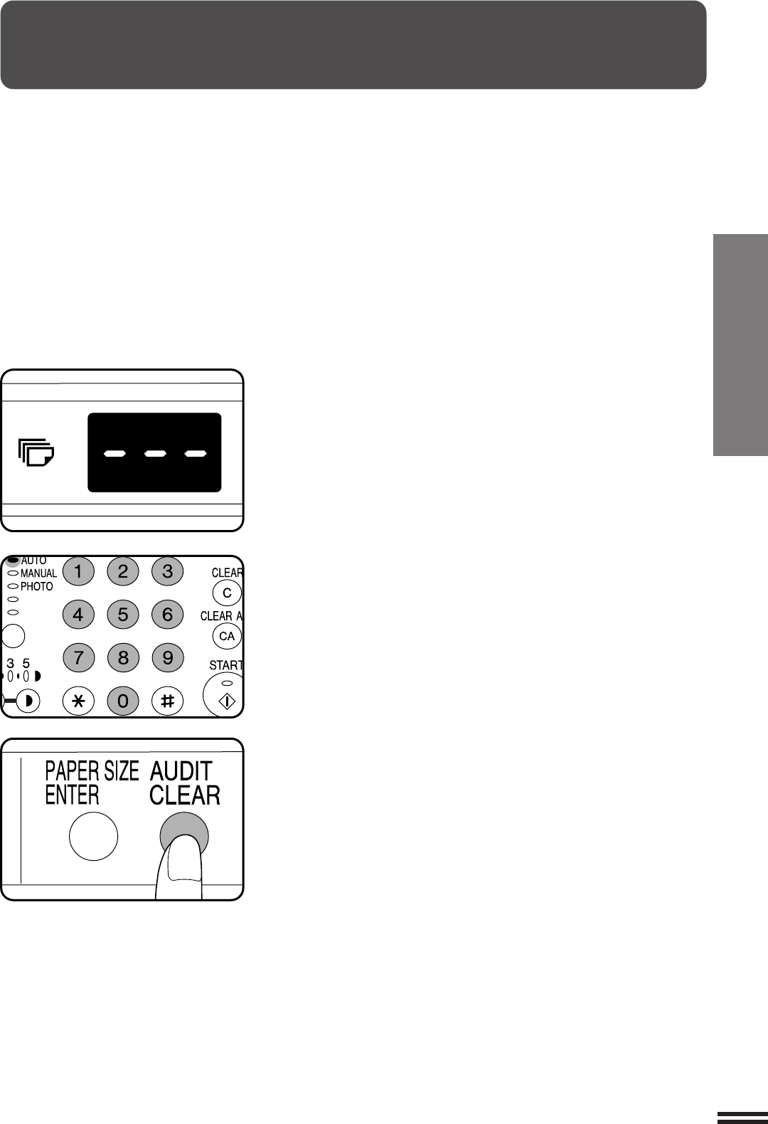 If the copier has been programmed in the auditing mode, “–––” will appear