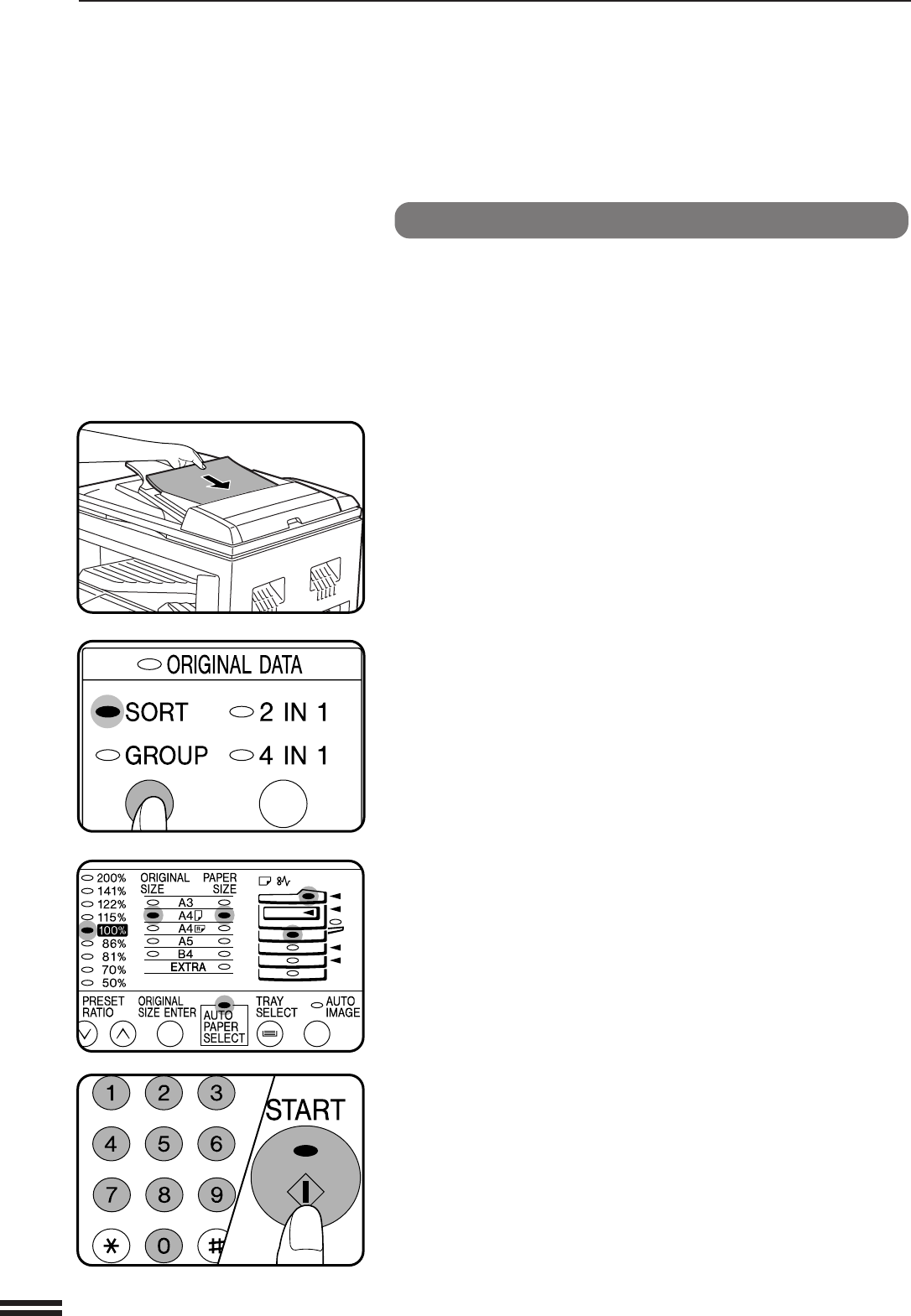 originals have been scanned. To copy in the sort mode, an optional single pass