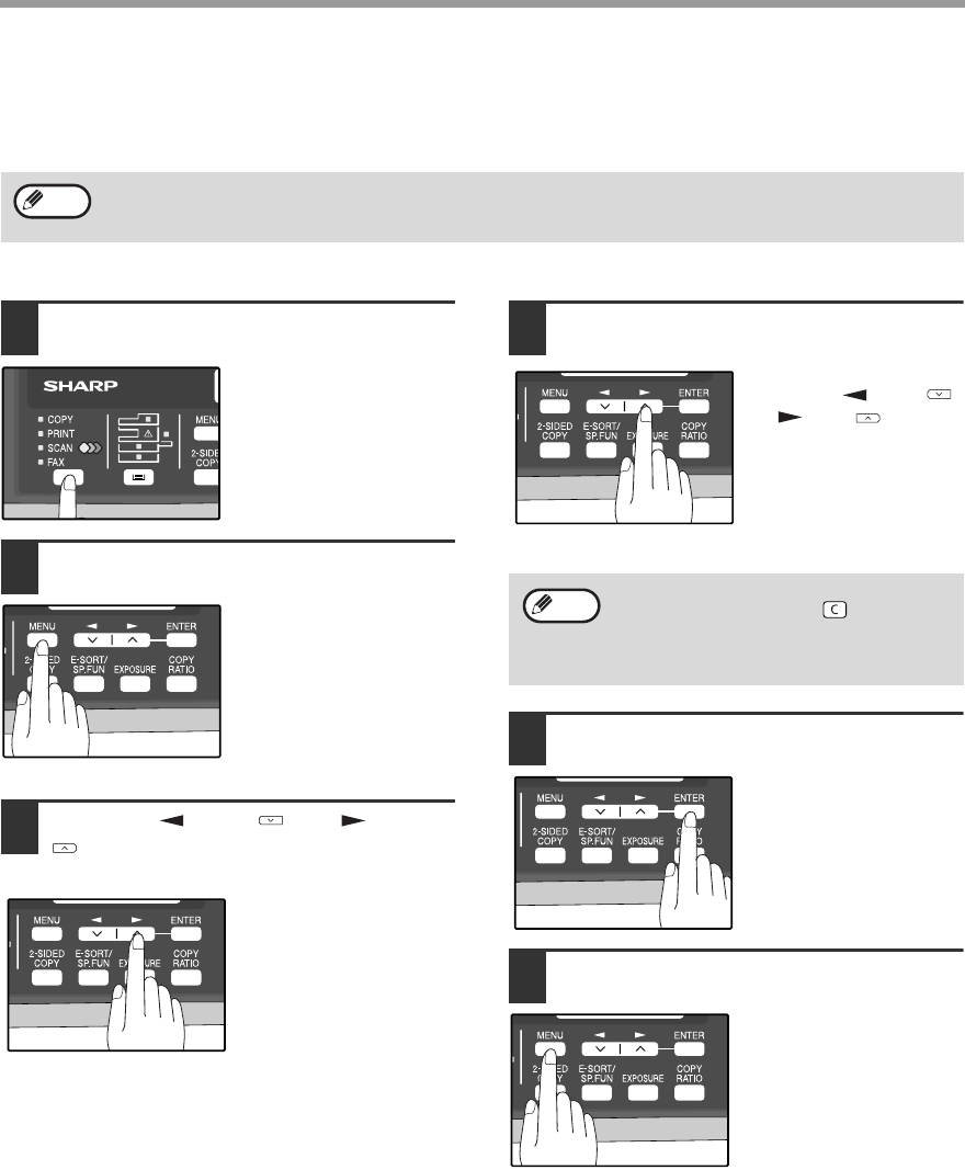 The general procedure for configuring settings for the fax function is explained below. Follow this procedure to