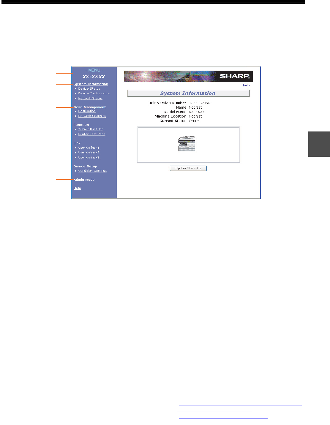 When you successfully connect to the Web server in the machine, the following page will appear in your browser.
