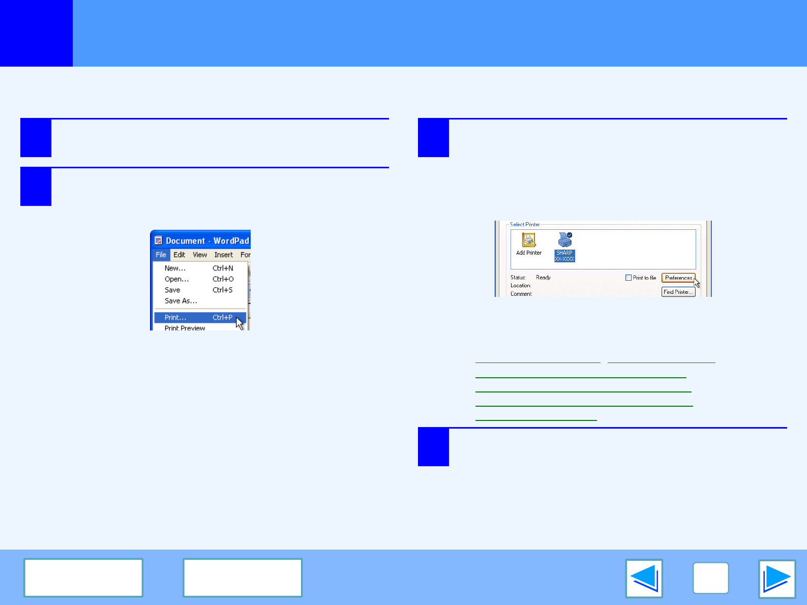 The following example explains how to print a document from WordPad.