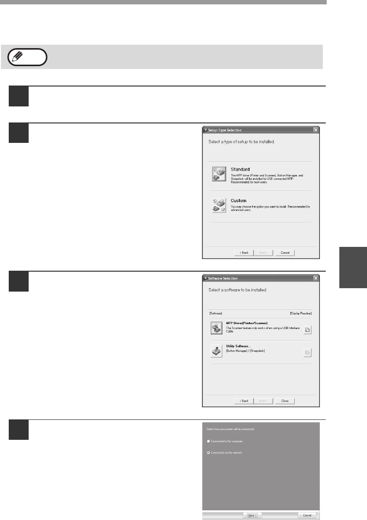 If the machine will be used as a shared printer on a network, follow these steps to