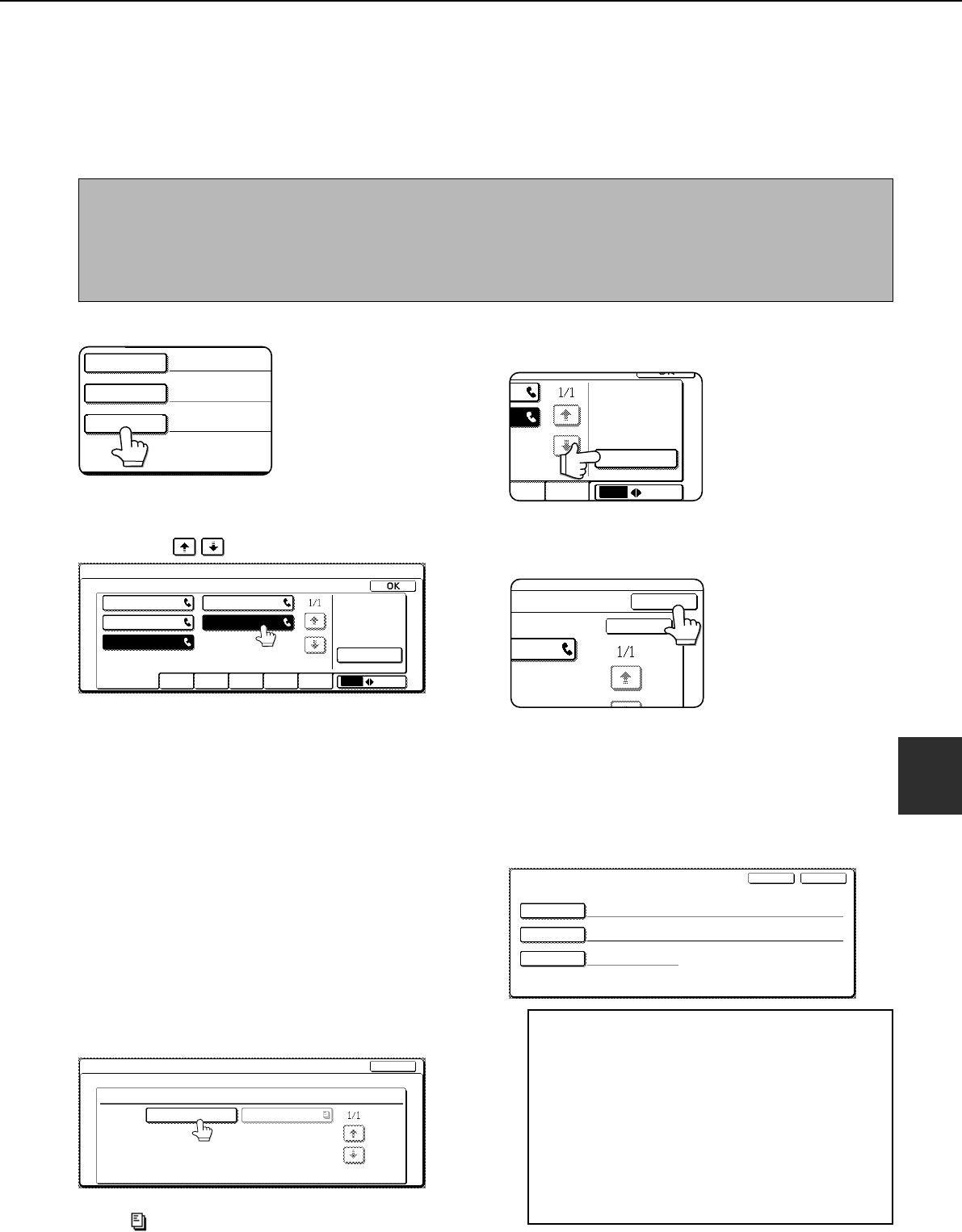 • Only destinations that have been programmed in auto dial keys (one-touch keys or group keys) can be selected. If you need