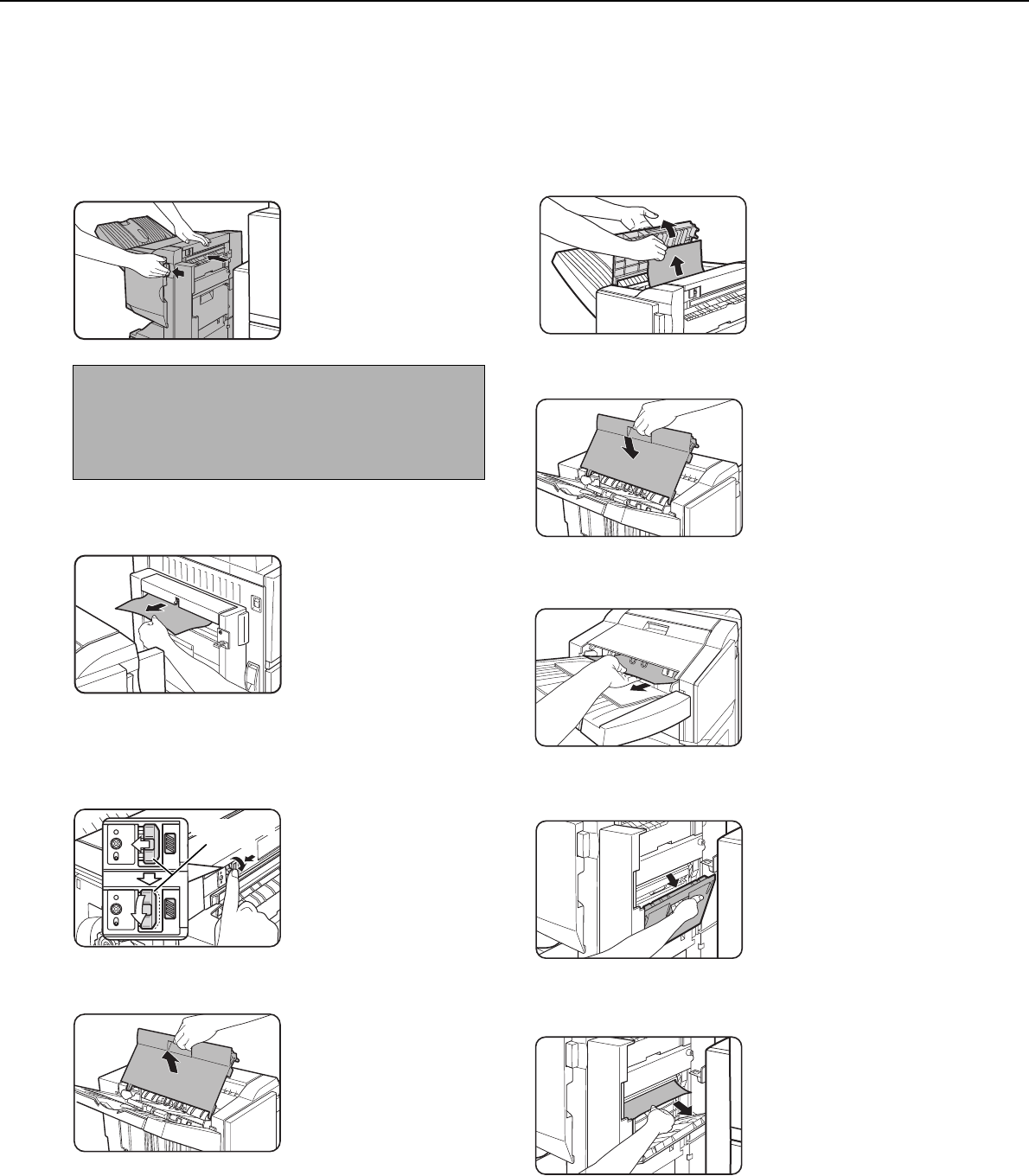 When a misfeed occurs in the saddle stitch finisher, remove the misfed paper following the procedure below.