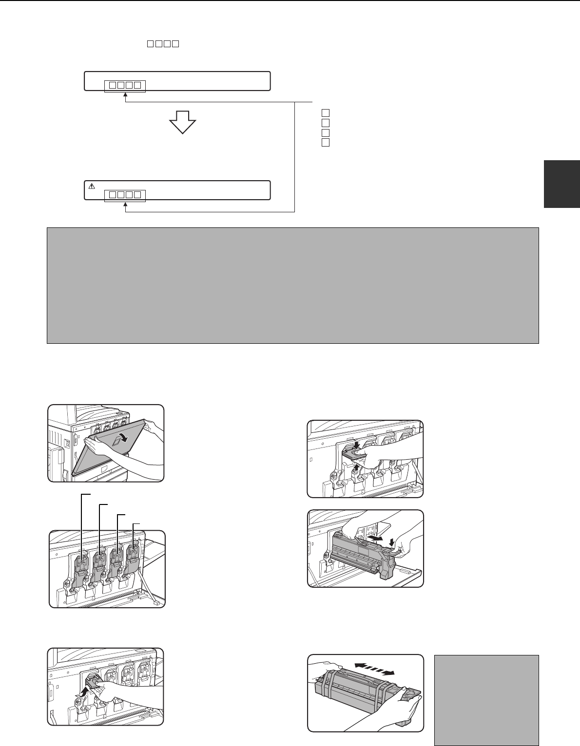● There may be cases that copy images become light or uneven before the message is displayed, depending on
