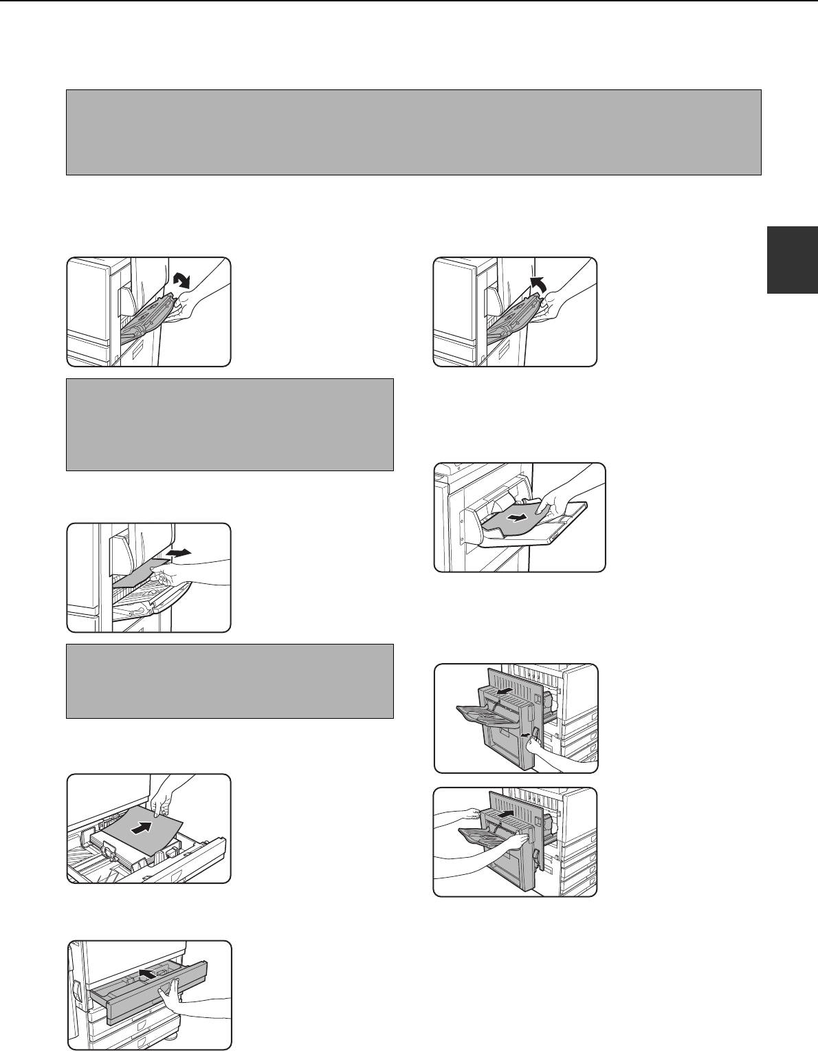 tray is drawn out of the machine, the paper may become torn and difficult to remove. To prevent this from