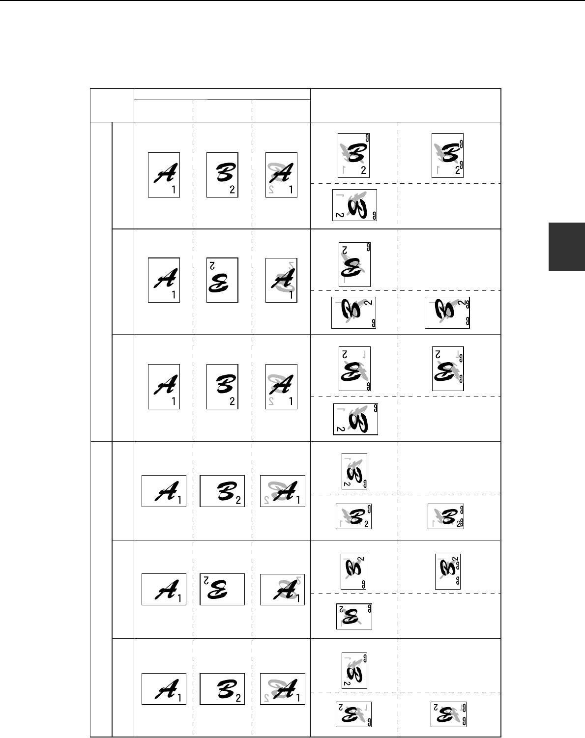 The orientation of the copy paper, original, scanned original data, and binding position selection are all interrelated.