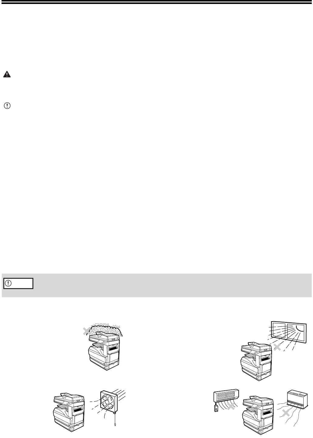 • Do not cover the machine with a dust cover, cloth or plastic film while the power is on. Doing so may prevent heat