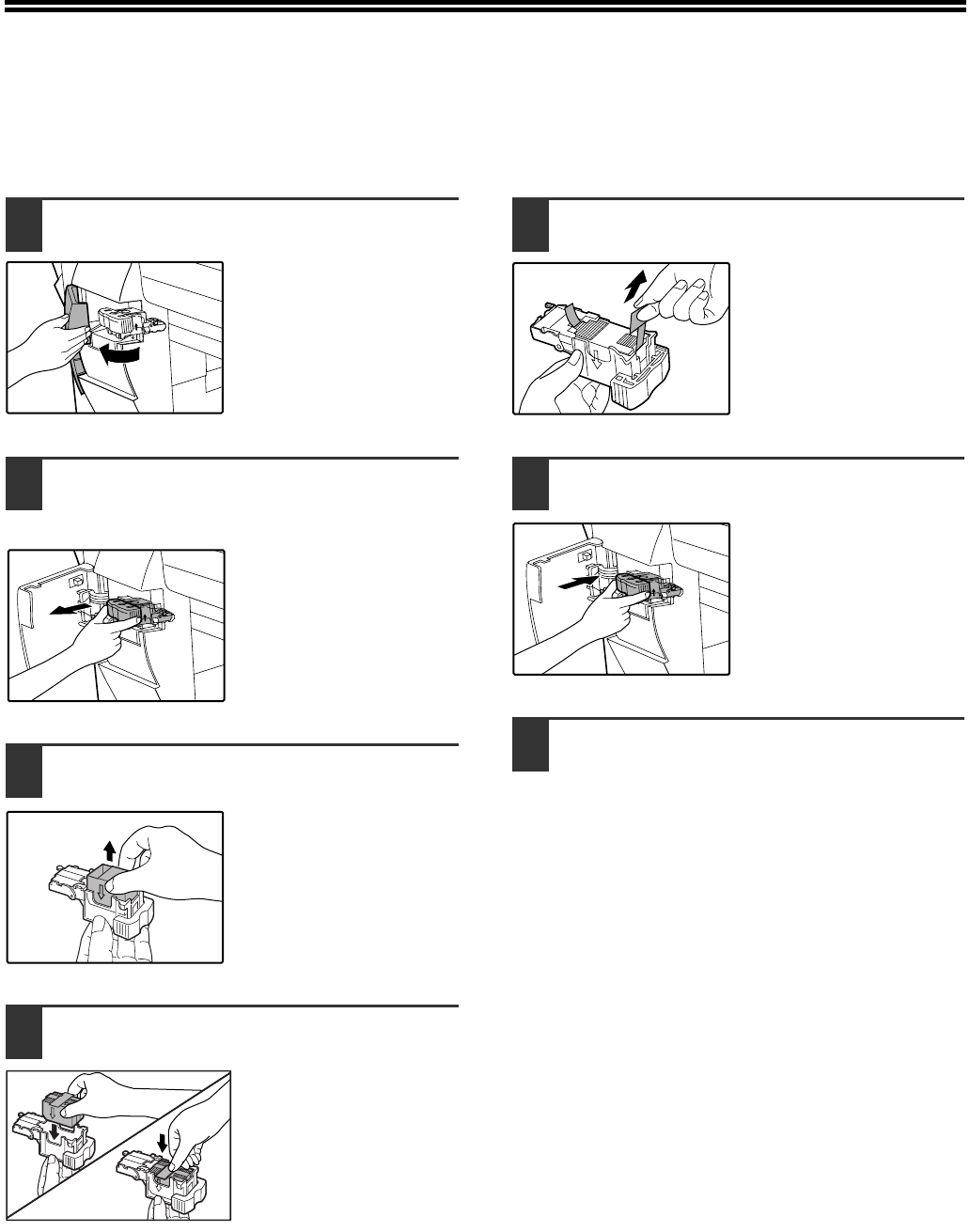 When the message "ADD STAPLES." appears, replace the staple cartridge as follows: