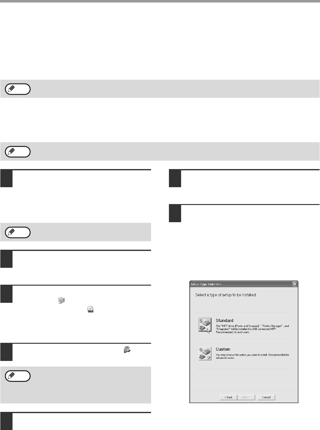 The standard installation procedure is normally used when the machine is connected by a USB cable and you wish