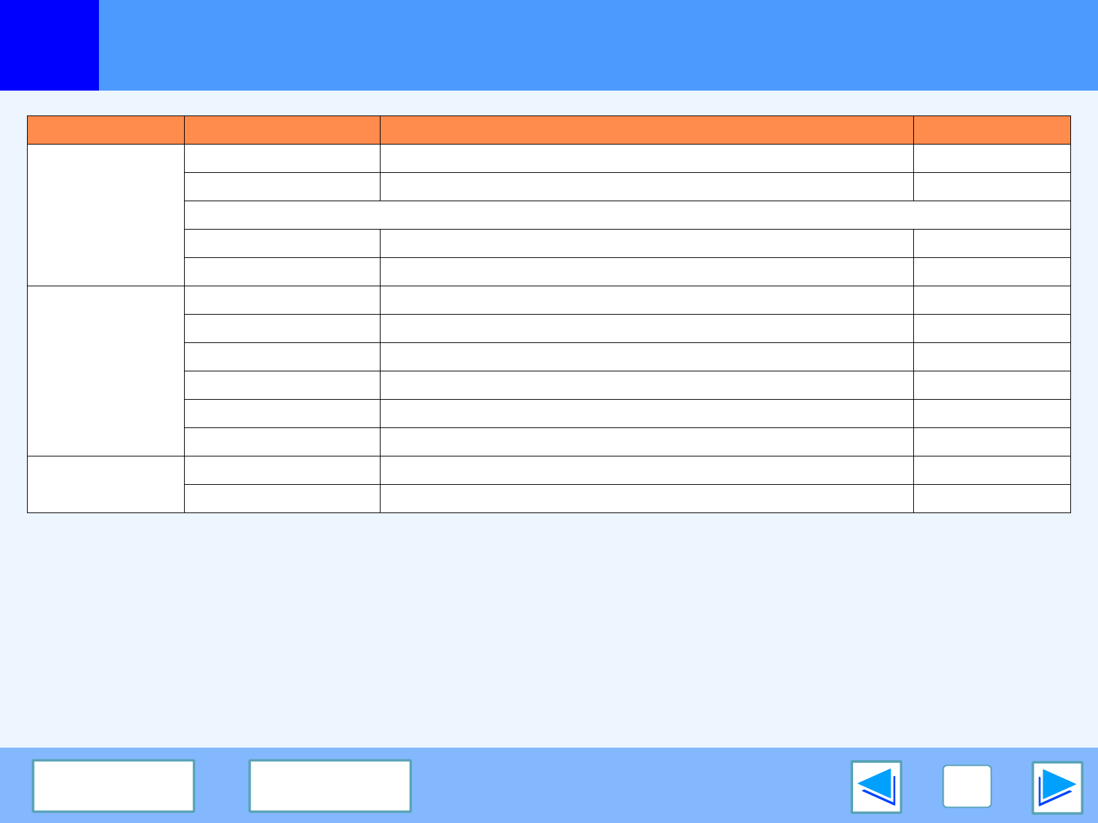 Tab Setting Selections Initial setting