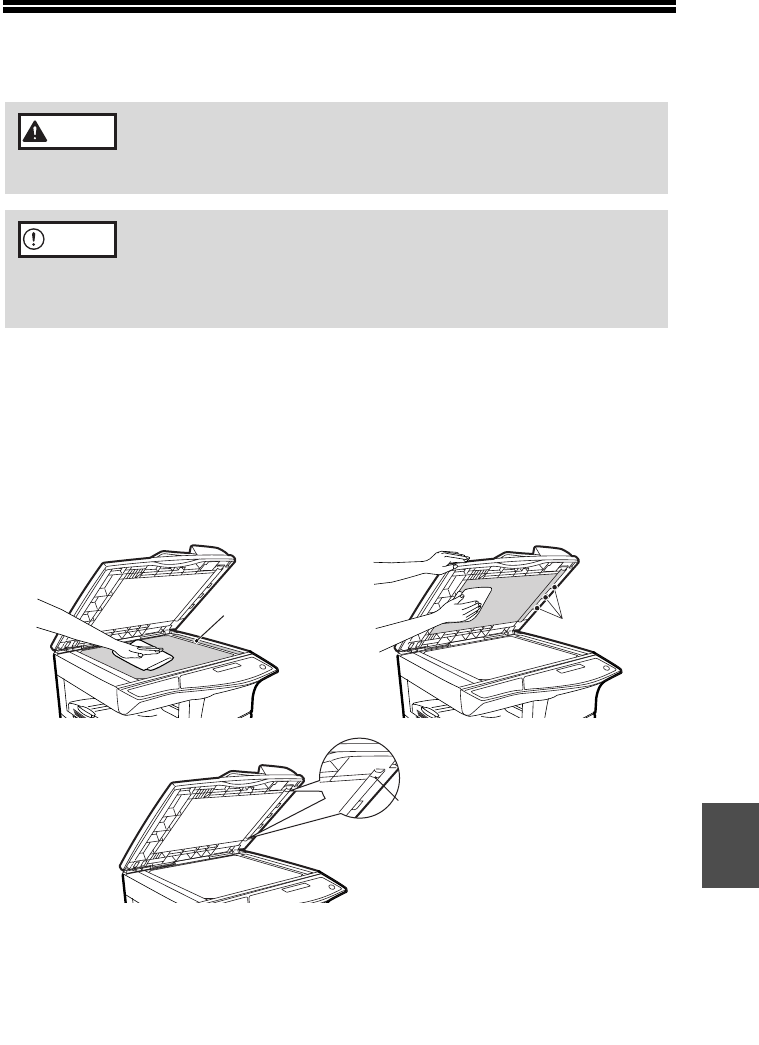 • Before cleaning, be sure to turn the power switch off and remove