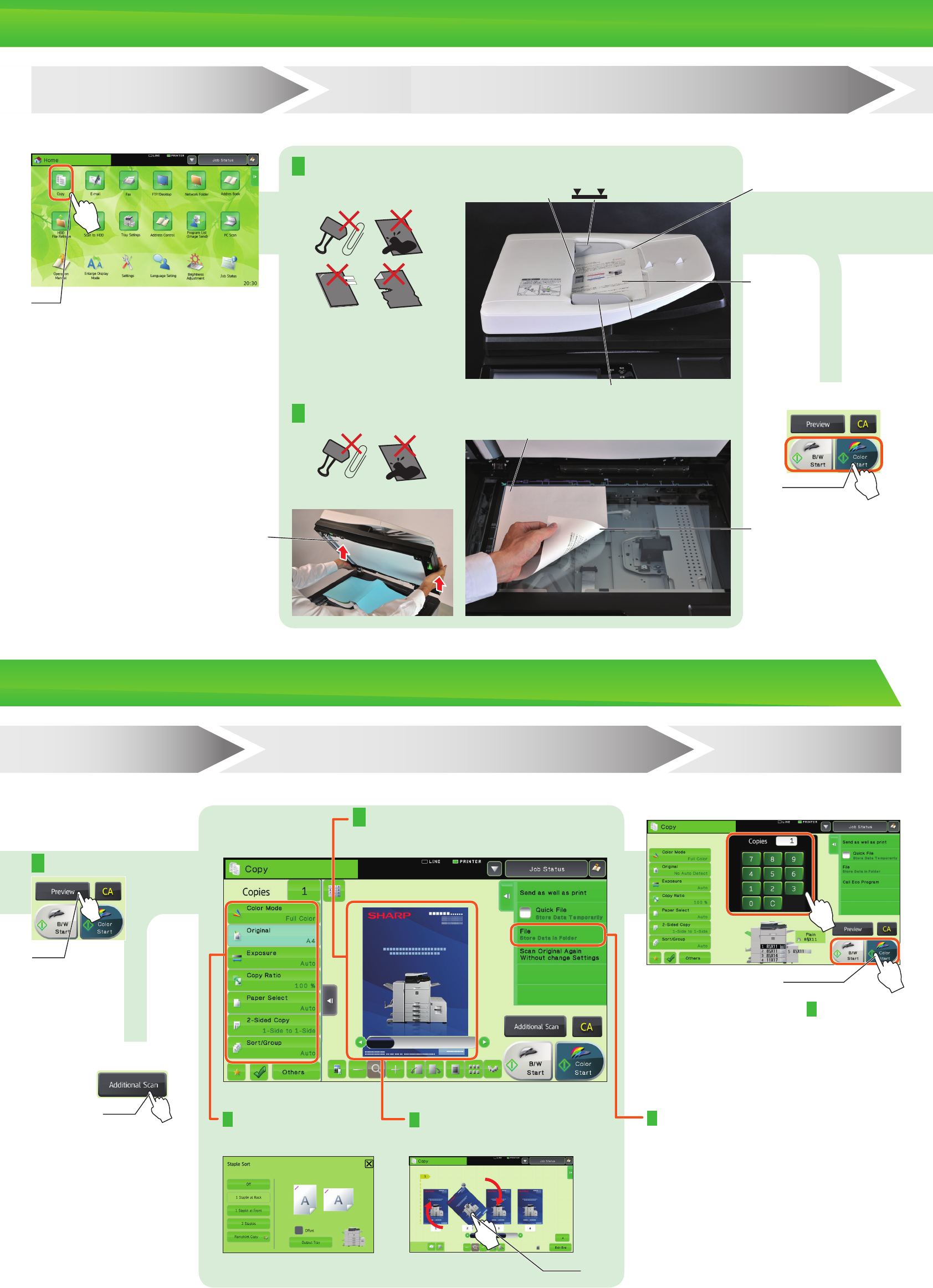 Select the automatic document feeder or the document glass according to the type of original.