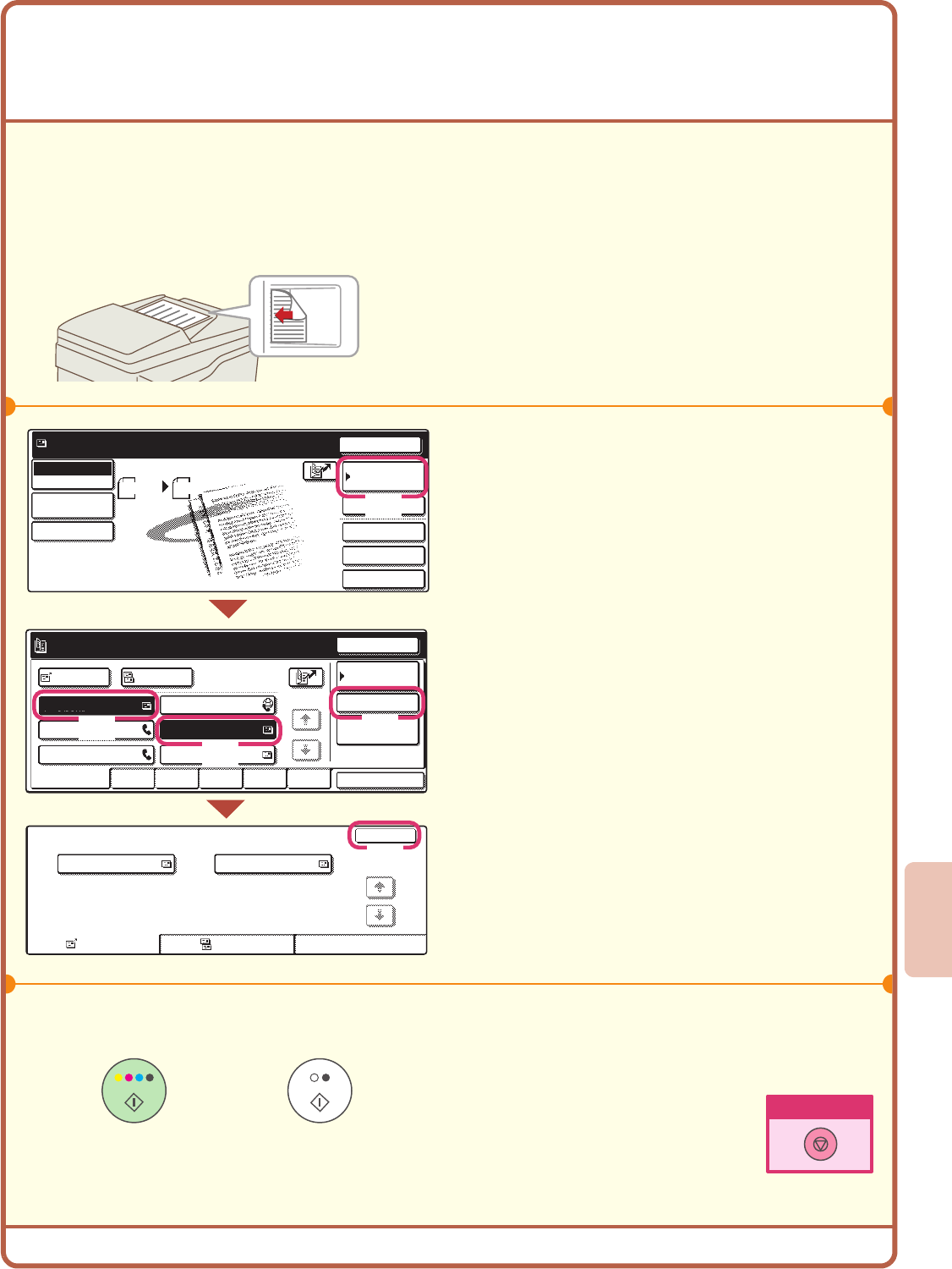 The same image can be sent to multiple destinations in a single operation. The destinations can also include fax