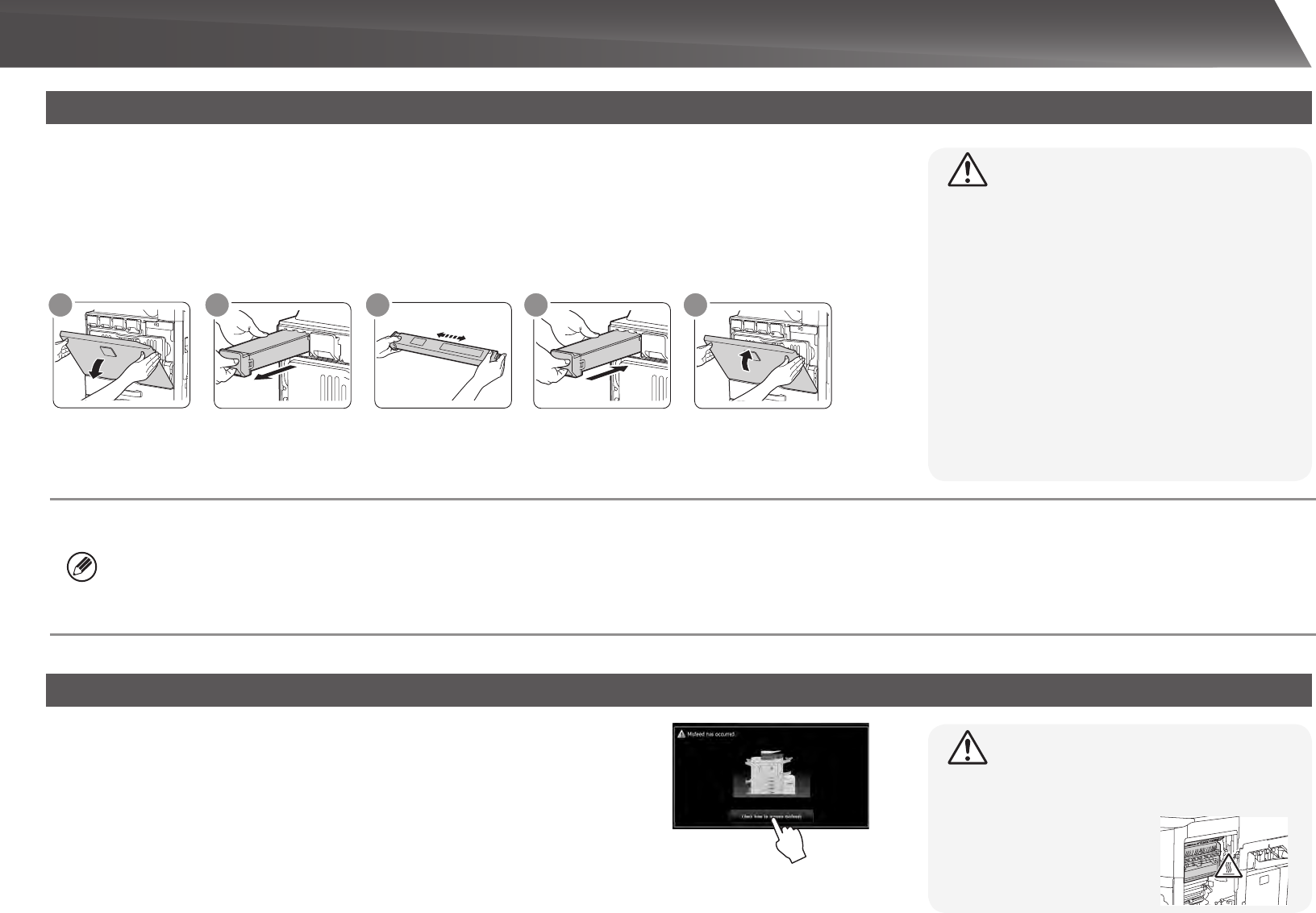 instructions. When the misfeed is cleared, the message will automatically clear.