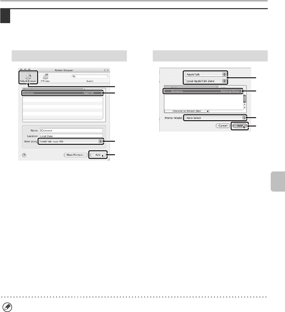 • If you are using Mac OS X v10.2.8, select [Sharp]