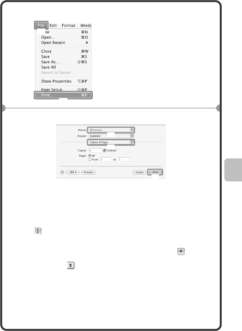 The machine name that appears in the "Printer" menu is normally [SCxxxxxx].