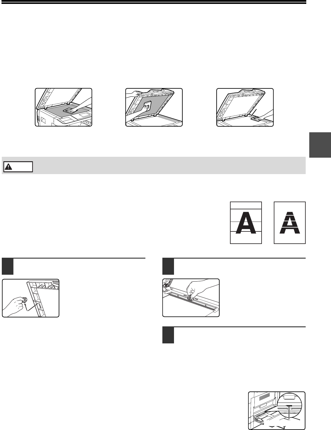long narrow glass surface on the right side of the document glass) become dirty, the dirt may appear on copies.