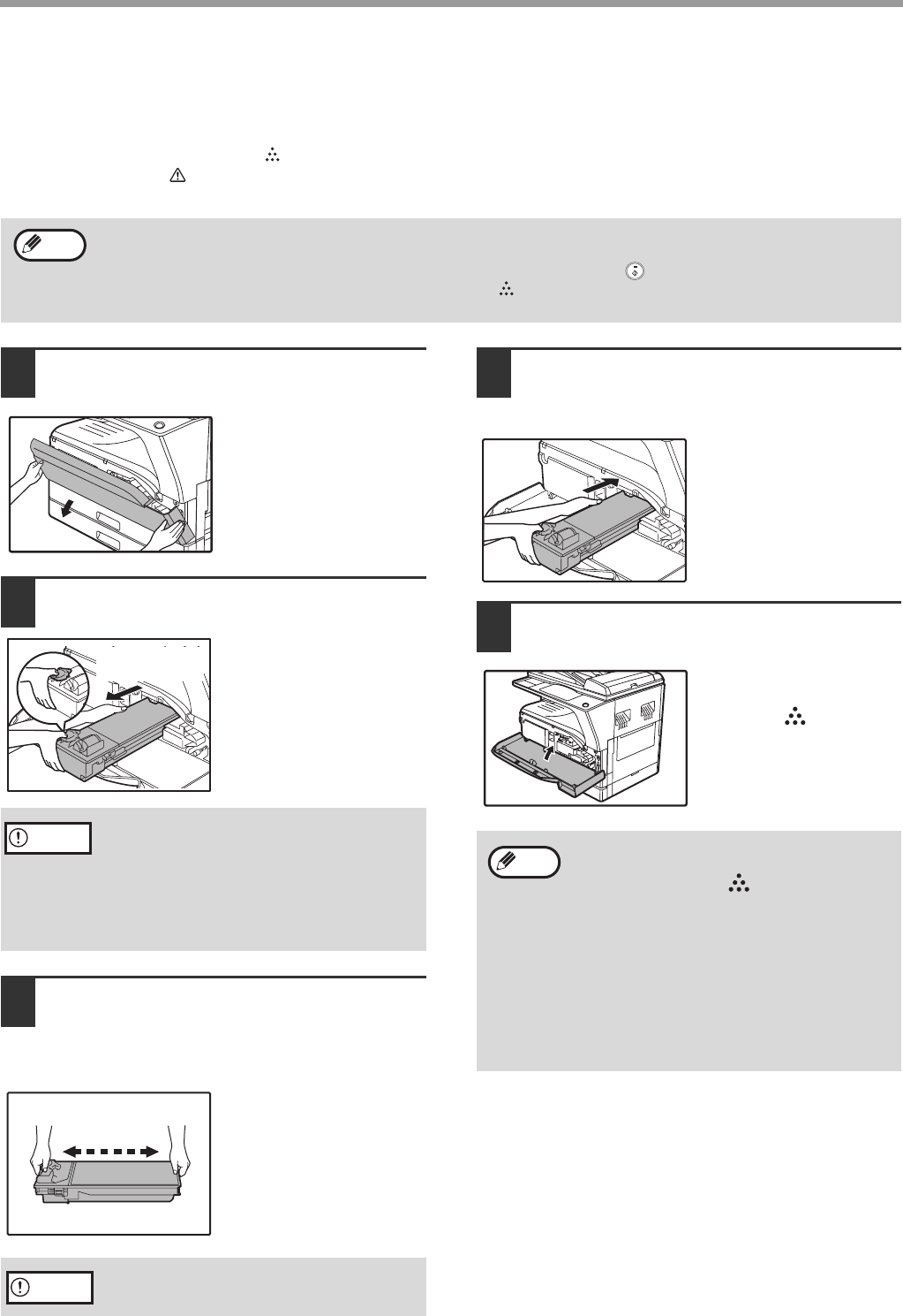 replaced before copying can be resumed. Follow the steps below to replace the toner cartridge.