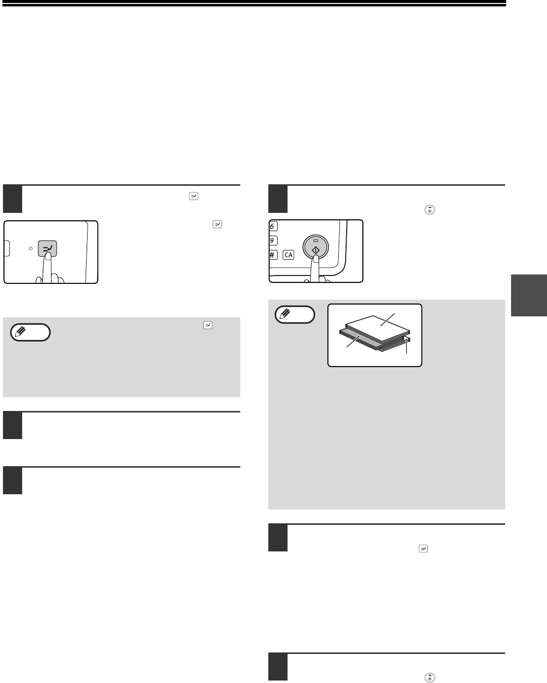 • Interrupt copying is not possible when the document glass is being used for a copy job and "NO SORT" is