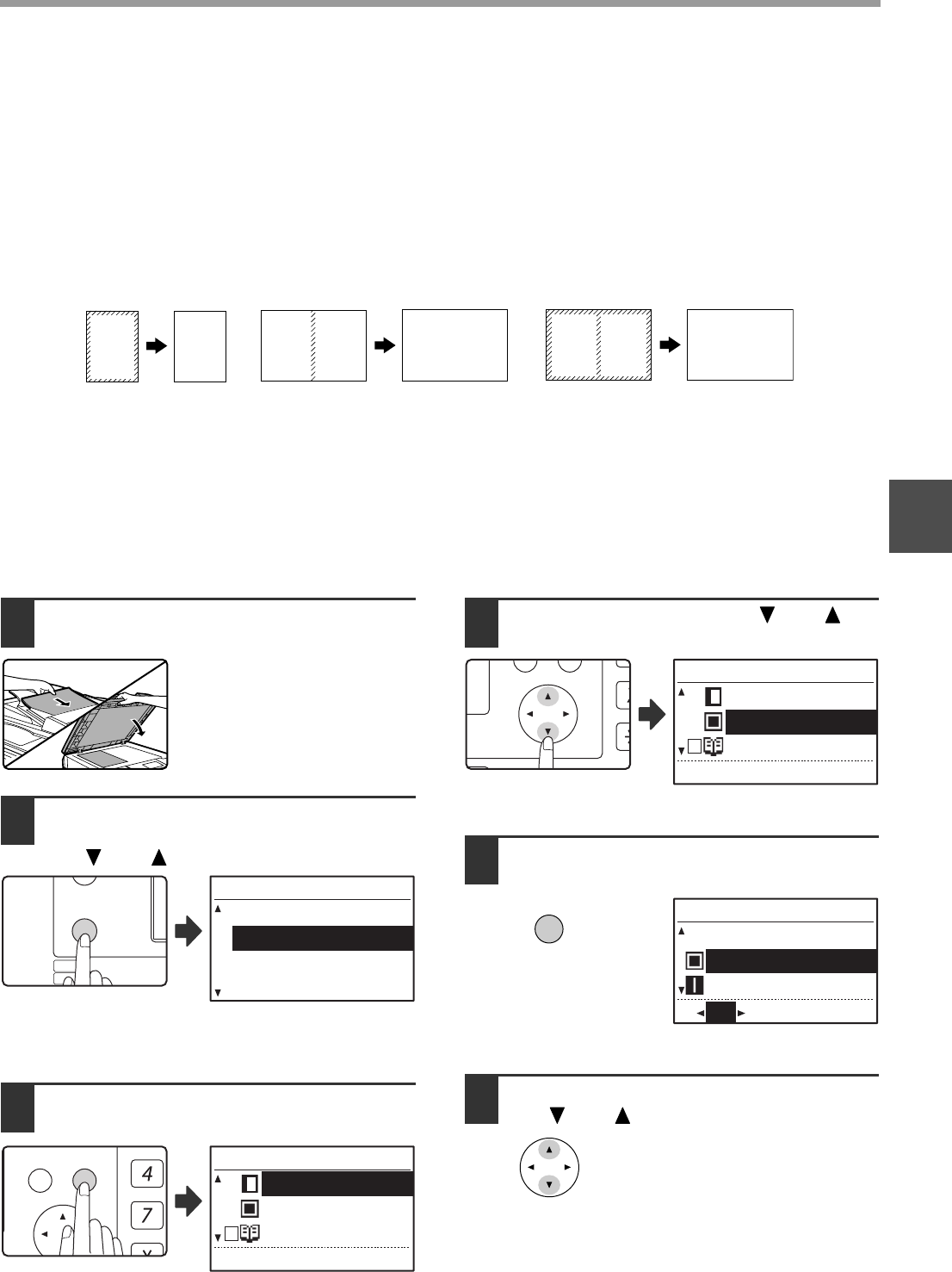 • Centre erase / Edge + Centre erase cannot be used in combination with dual page copy (p.47).
