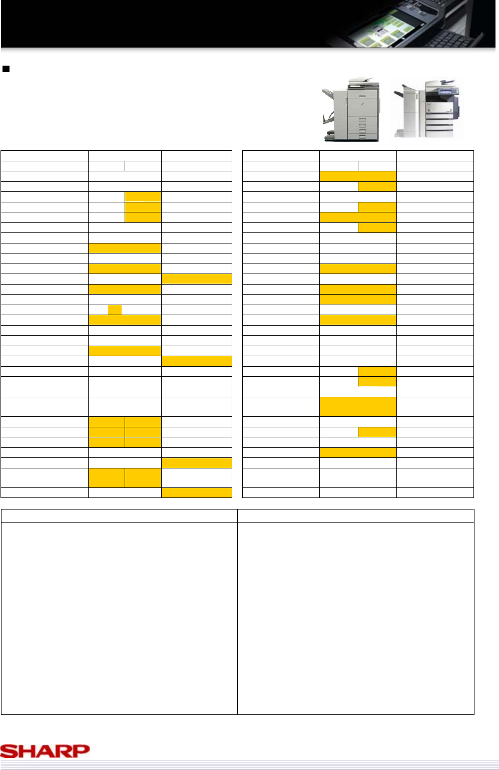 Copier Std. Mem. MB 320mb 640mb 288mb (shared) Functionality Sharpdesk