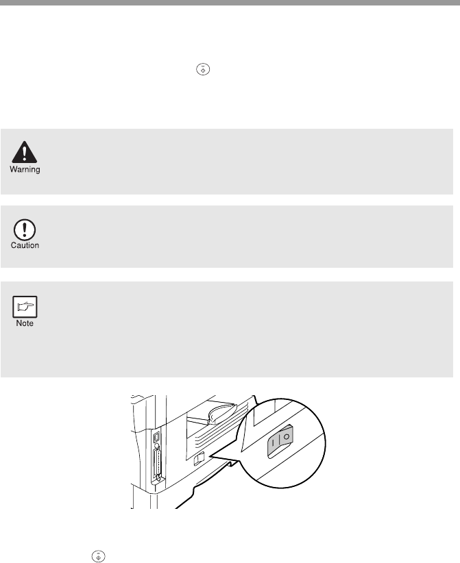 the power cord into the nearest outlet. Turn the power switch on the left side of the