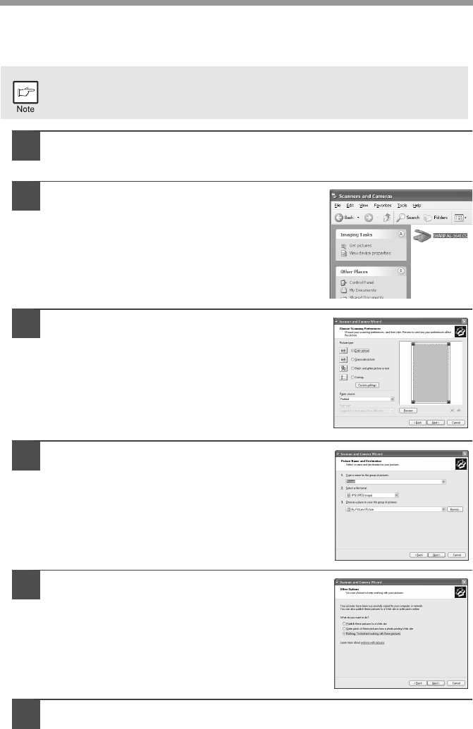 procedure for scanning with the "Scanner and Camera Wizard" is explained here.