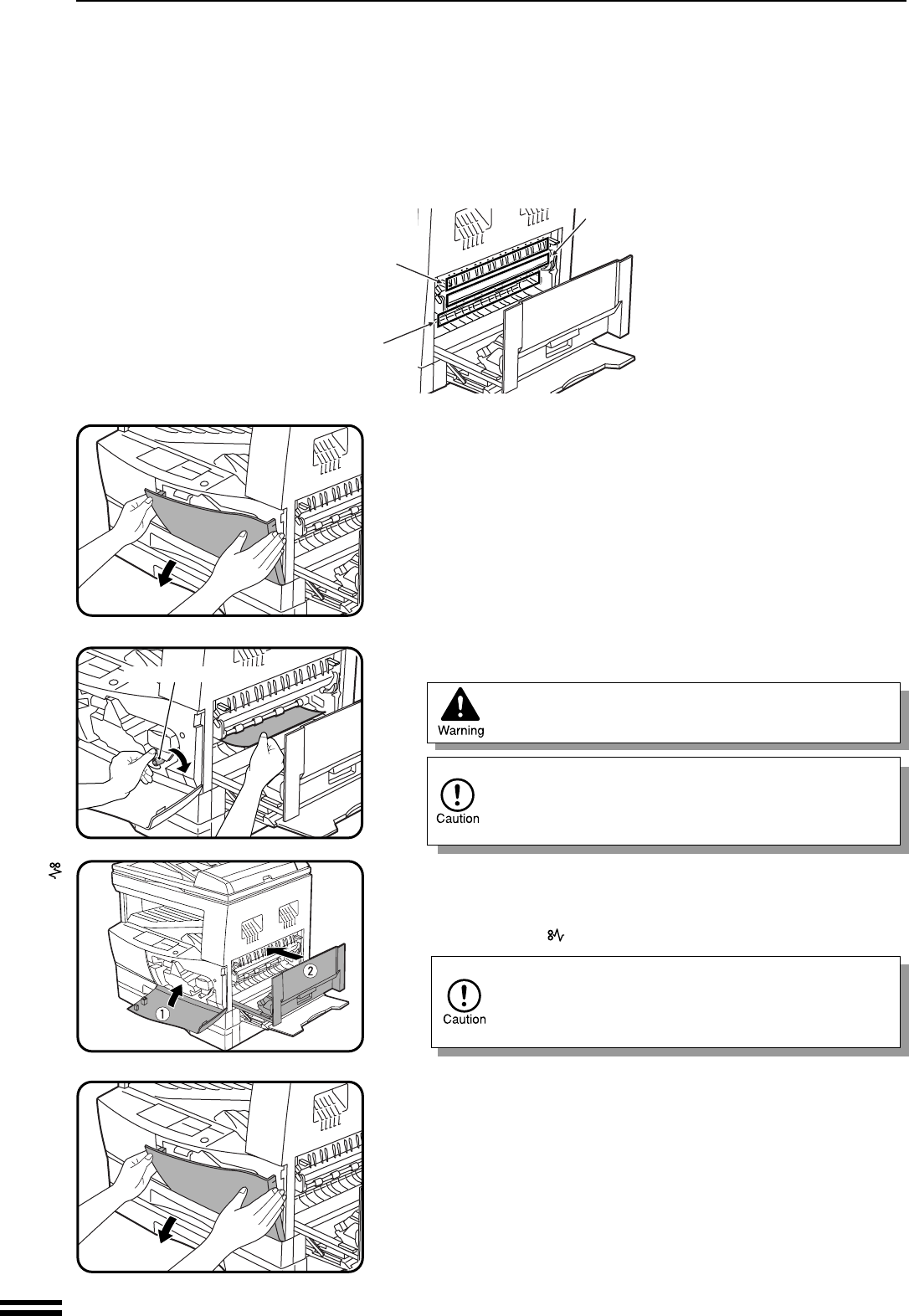 The fusing unit is hot. Take care in removing paper.