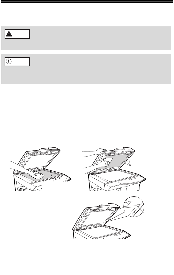 be copied. Wipe the glass, SPF/RSPF scanning window, cover and SPF/RSPF roller
