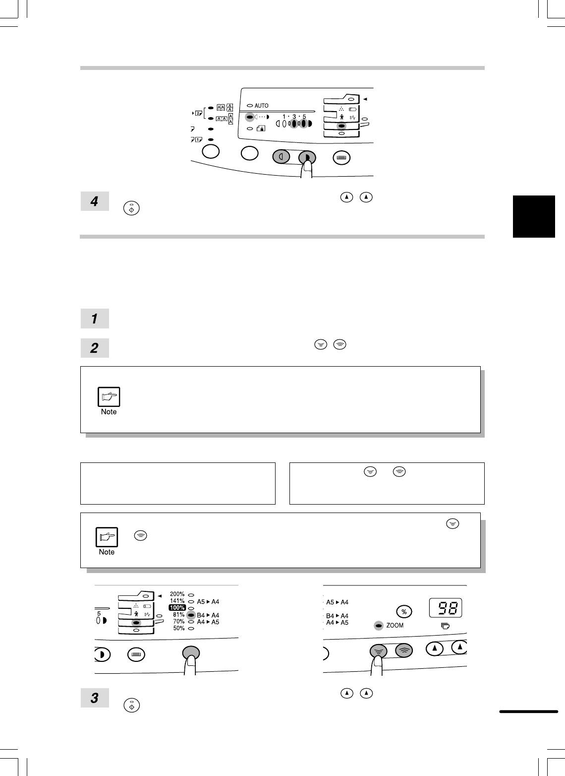 Use the copy ratio selector key and/or zoom ( , ) keys to select the desired copy