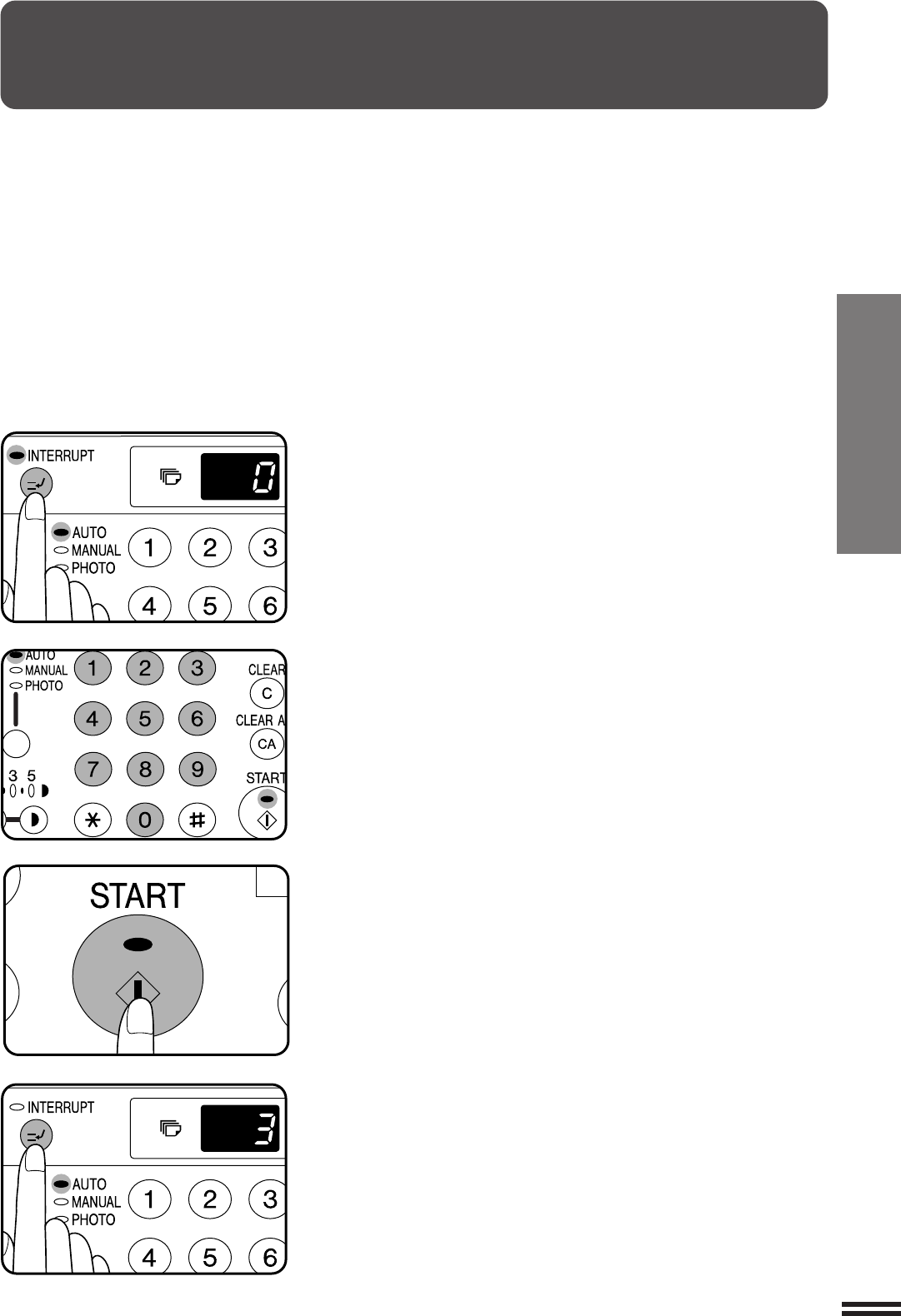 program No. 10, “–––” will appear in the copy quantity display. Enter