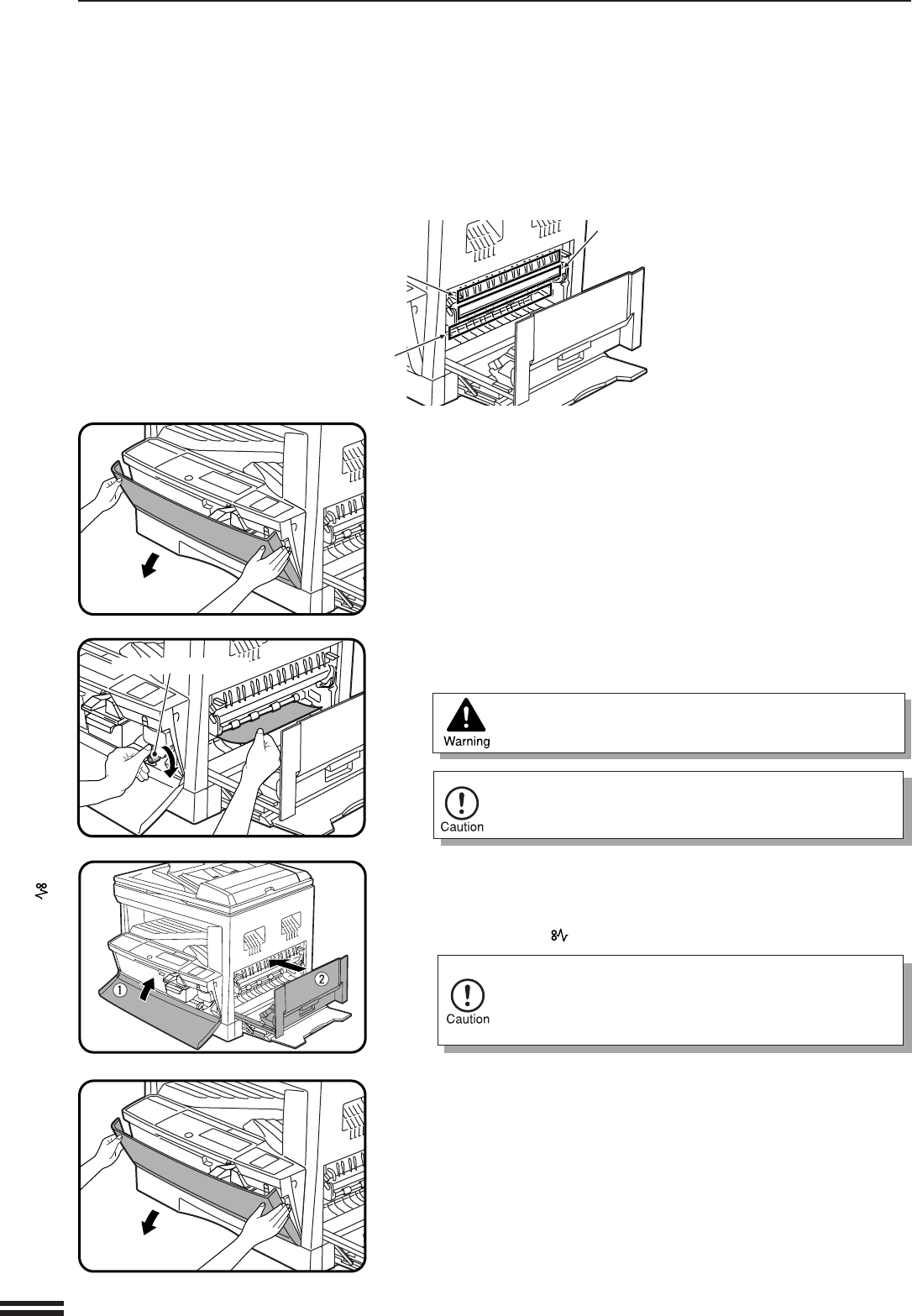 when removing the misfed paper. Doing so may