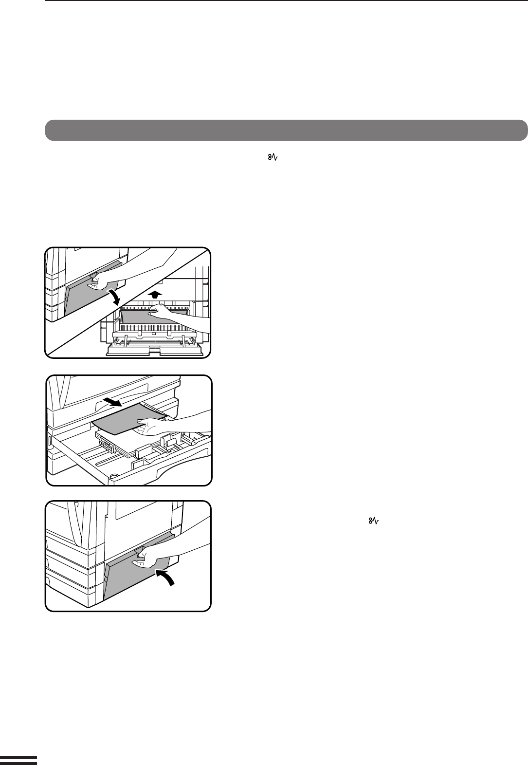 The copier will stop when a misfeed occurs. The misfeed ( ) indicator and
