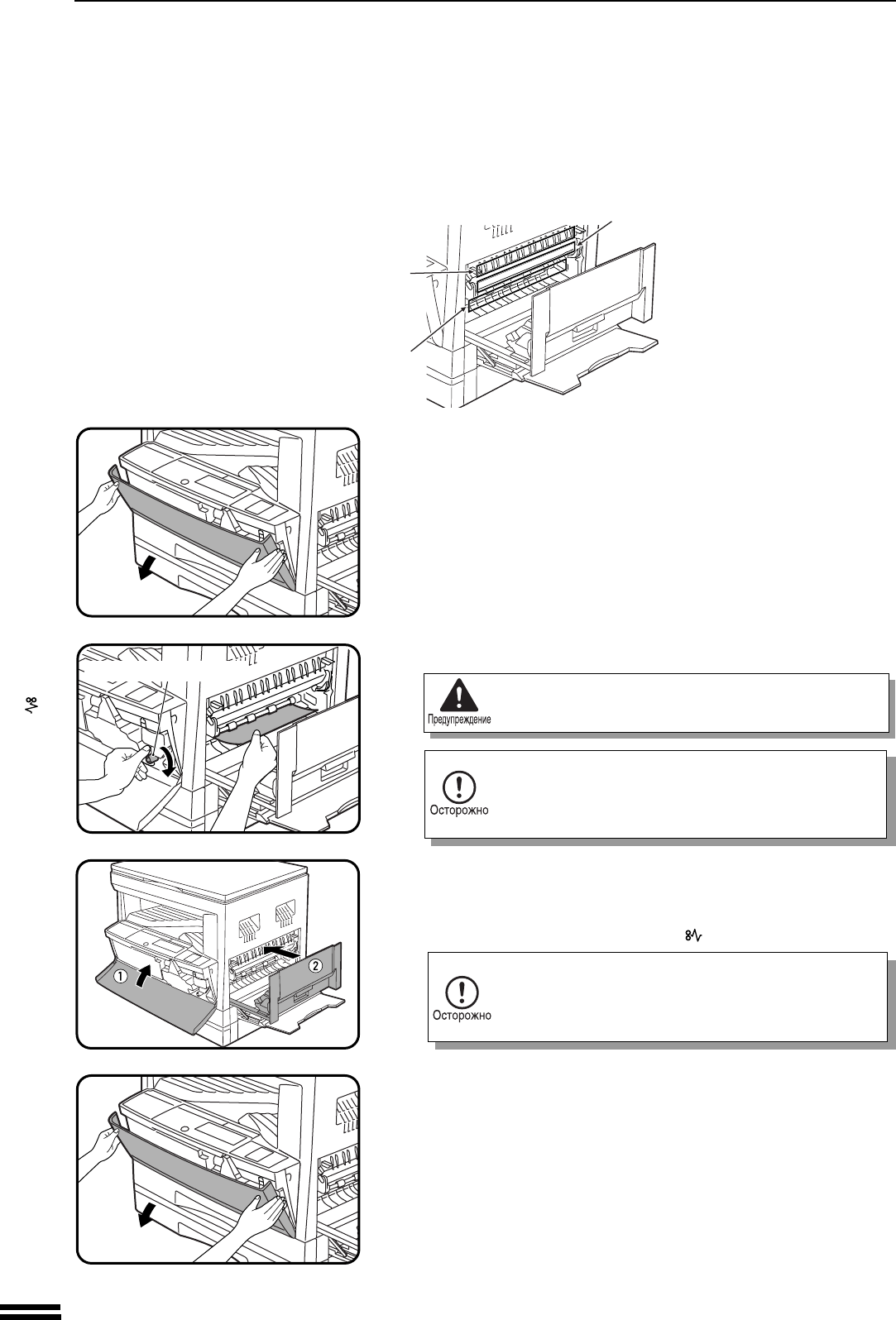 If paper is misfed here, proceed to