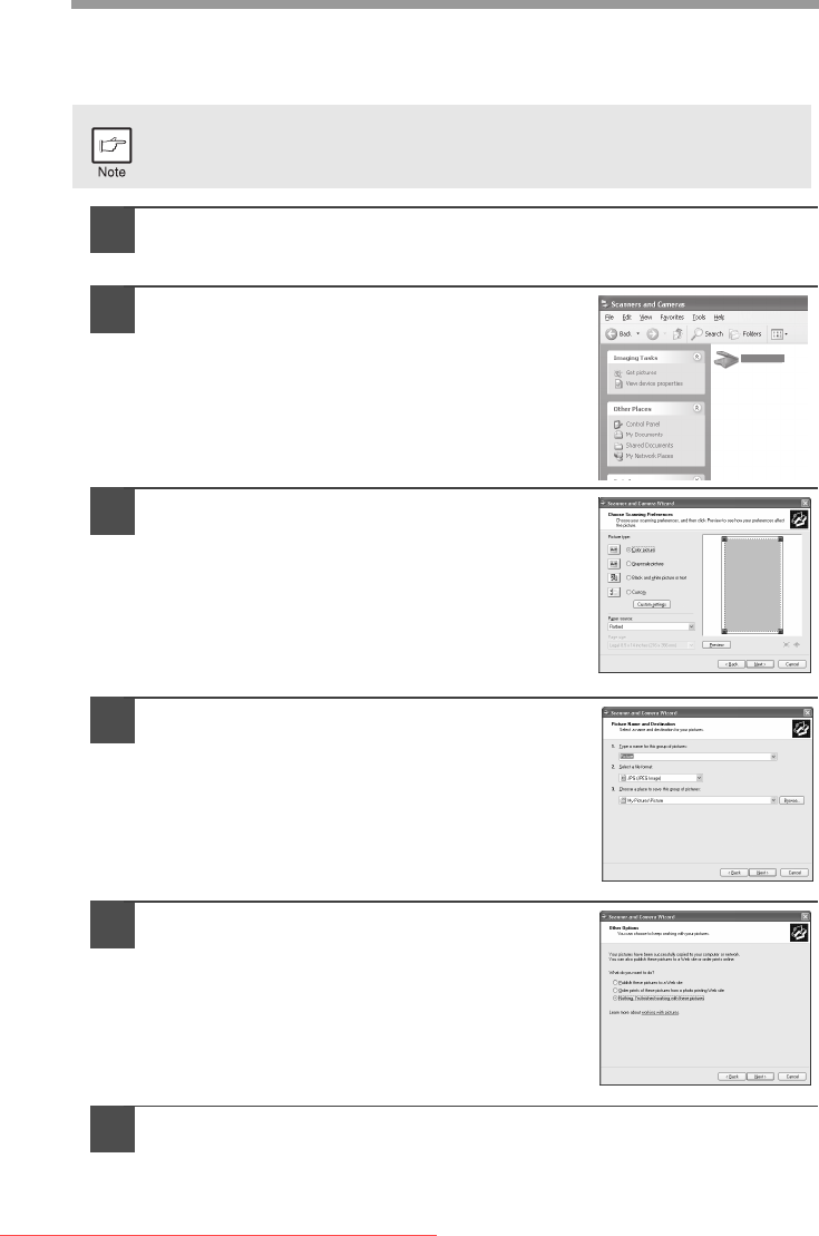 procedure for scanning with the "Scanner and Camera Wizard" is explained here.
