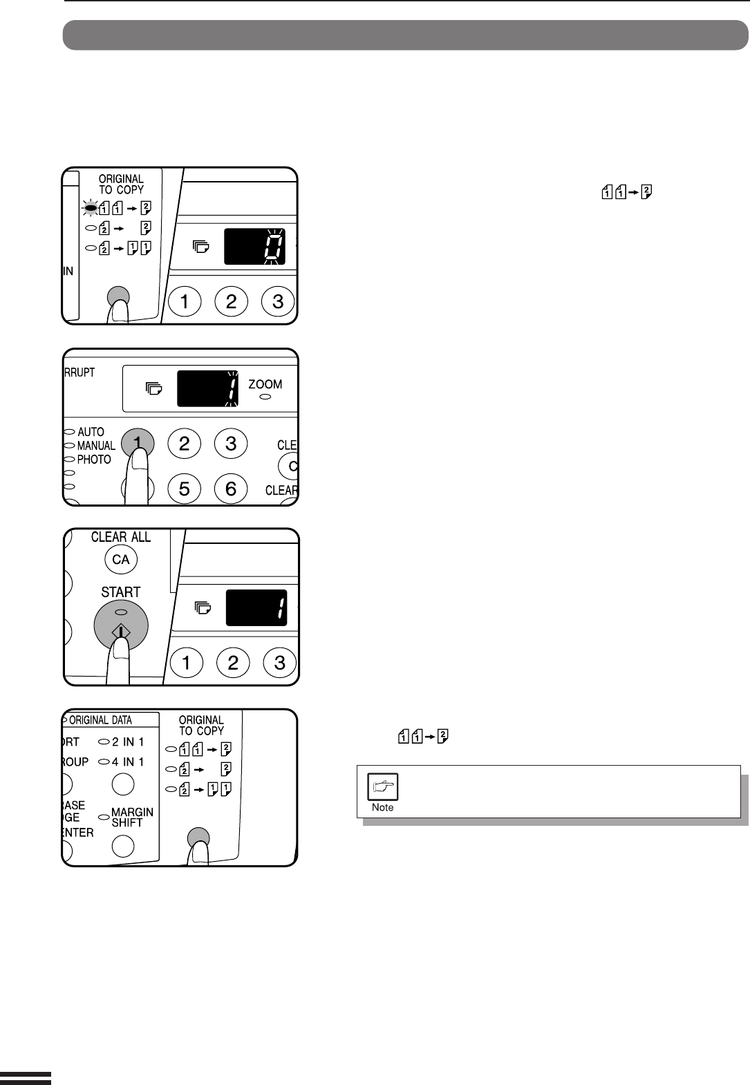 Press the ORIGINAL TO COPY key.