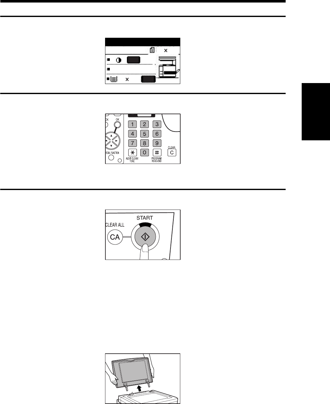 When the number of copies output reaches this limit, copying will stop and the START key indicator will