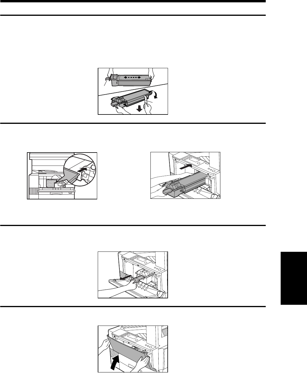Remove the new toner cartridge from the bag. Grasp the cartridge on