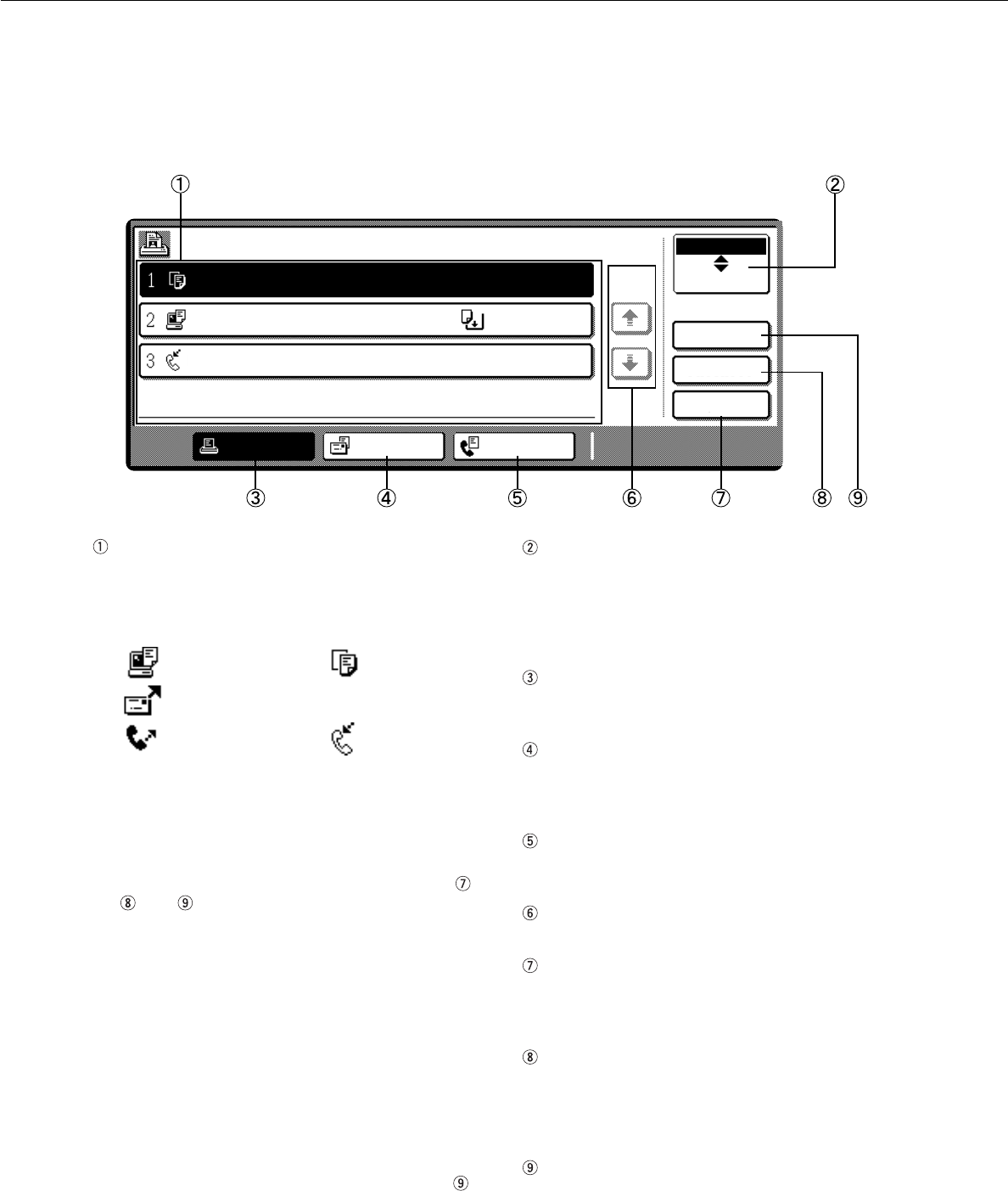 This screen is displayed when the [JOB STATUS] key on the operation panel is pressed.