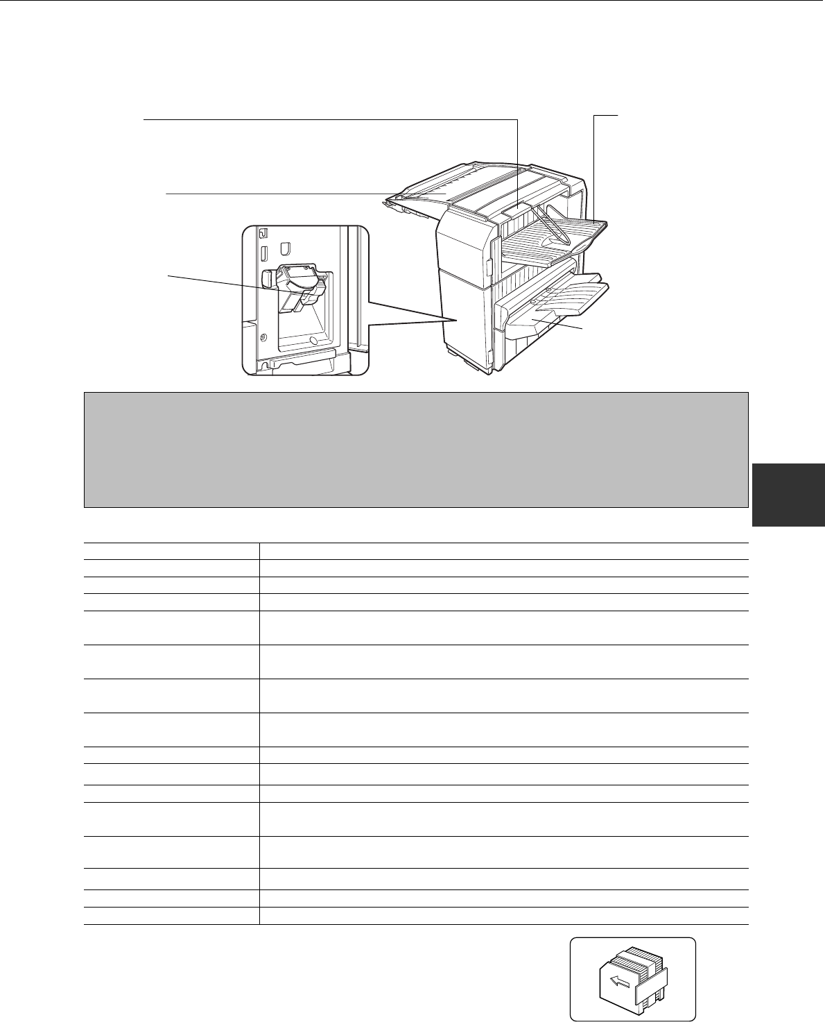 AR-SC1 staple cartridges must be used for this finisher. The cartridge